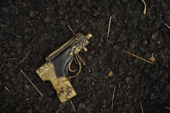 Rock Dhokra Pistol made by our own apprentice who is now a master craftman with us, tells the story of Devrai Art Village.