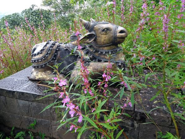 Rock Dhokra Nandi- This sculpture of the Nandi is our biggest piece of Rock Dhokra (patented), made in 2018. It weighs 900 kg and has two stones—one in the body and one in the hump. The entire piece was cast unsuccessfully twice before this version was made. It is a single-piece casting, and any casting failure means the process has to be restarted from the very first stage. This is installed in our forest garden, and a similar piece is installed at Hindu College (Delhi).