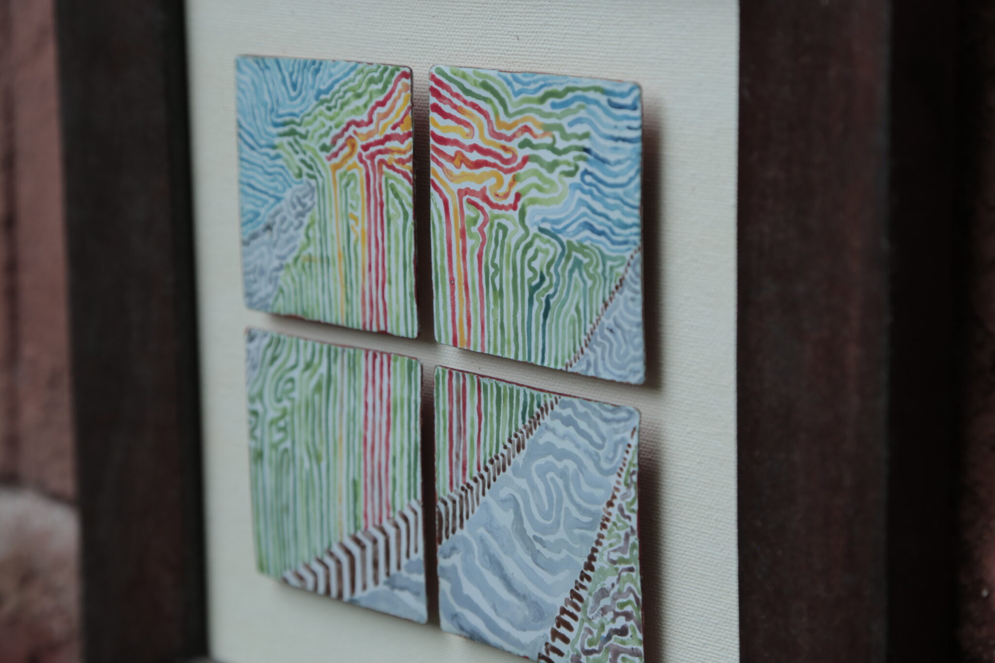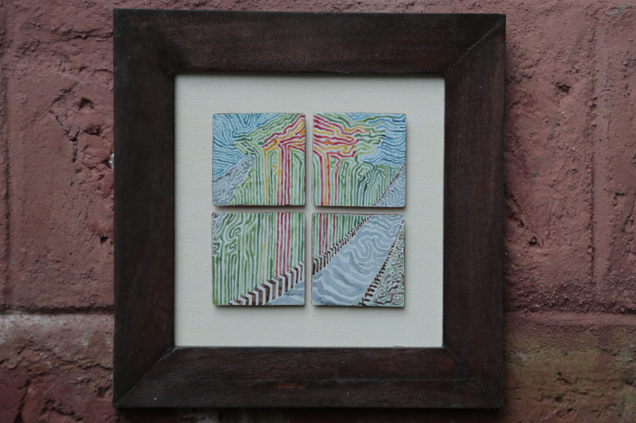 This abstract landscape is inspired by spring time in Panchgani, where bright red Gulmohar patches can be seen between the dense green hillslopes. The melting landscape as seen from the sinuous roads is what makes Panchgani an artist’s paradise.