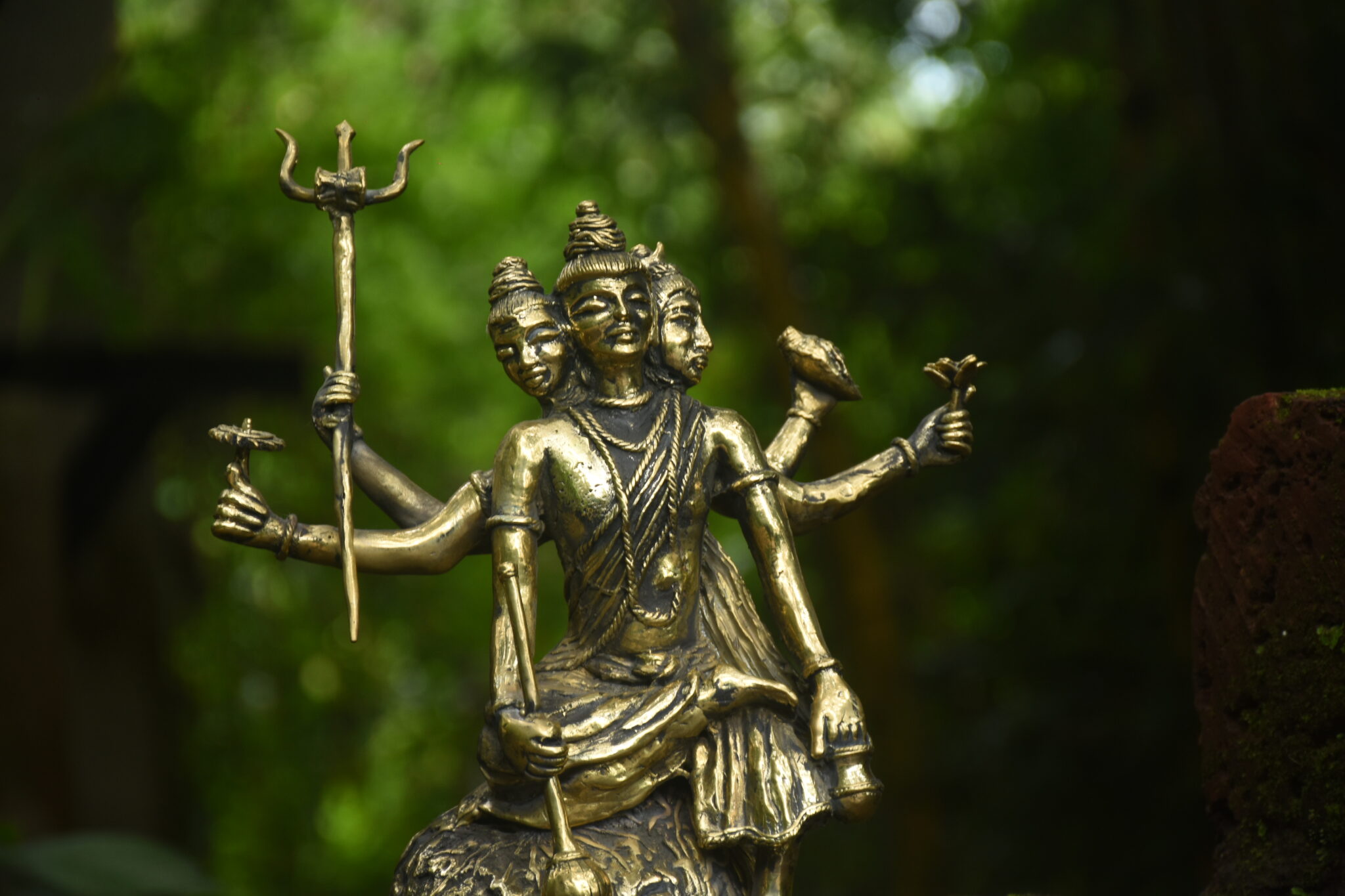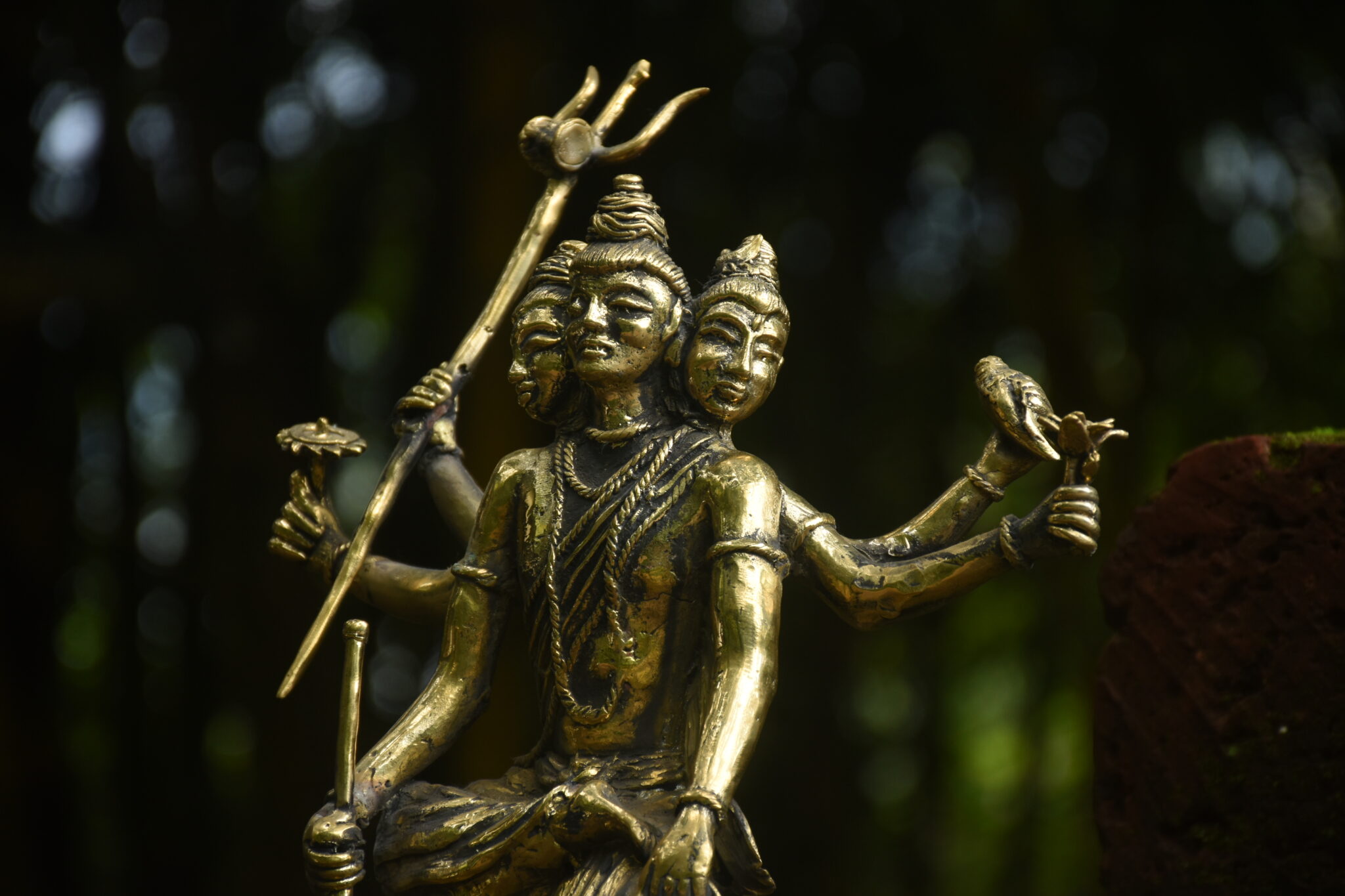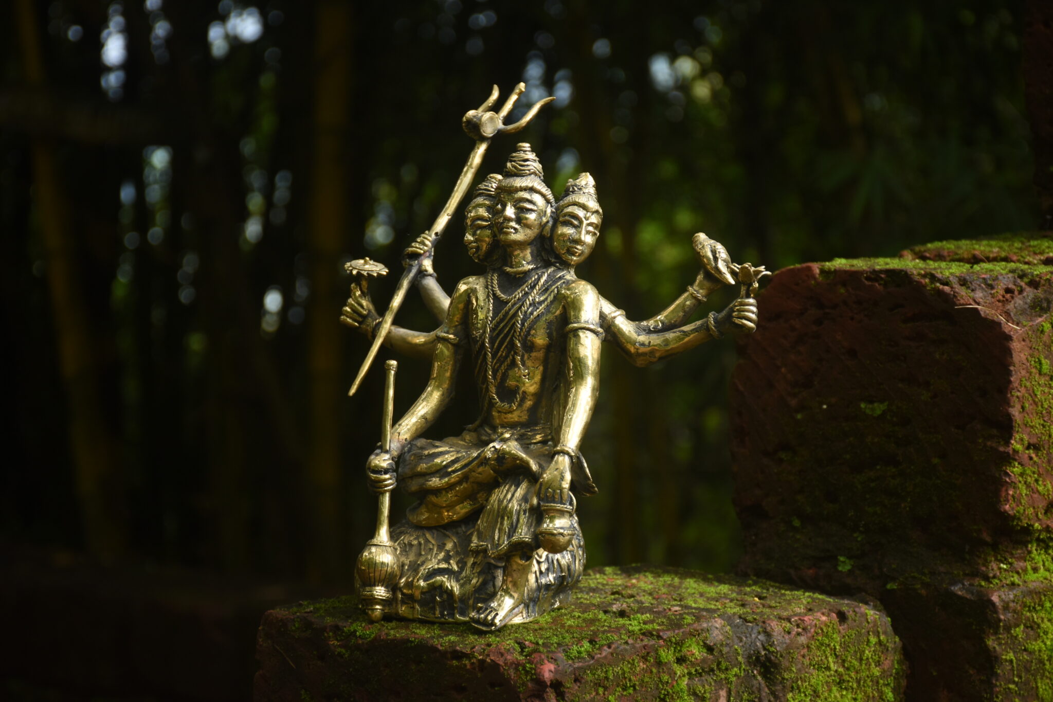 This is brass sculpture of Dattatreya, revered as a combined manifestation of the divine trinity?Brahma (the creator), Vishnu (the preserver), and Shiva (the transformer). The sculpture symbolises his role as the eternal teacher and a guide who finds wisdom in all aspects of existence.