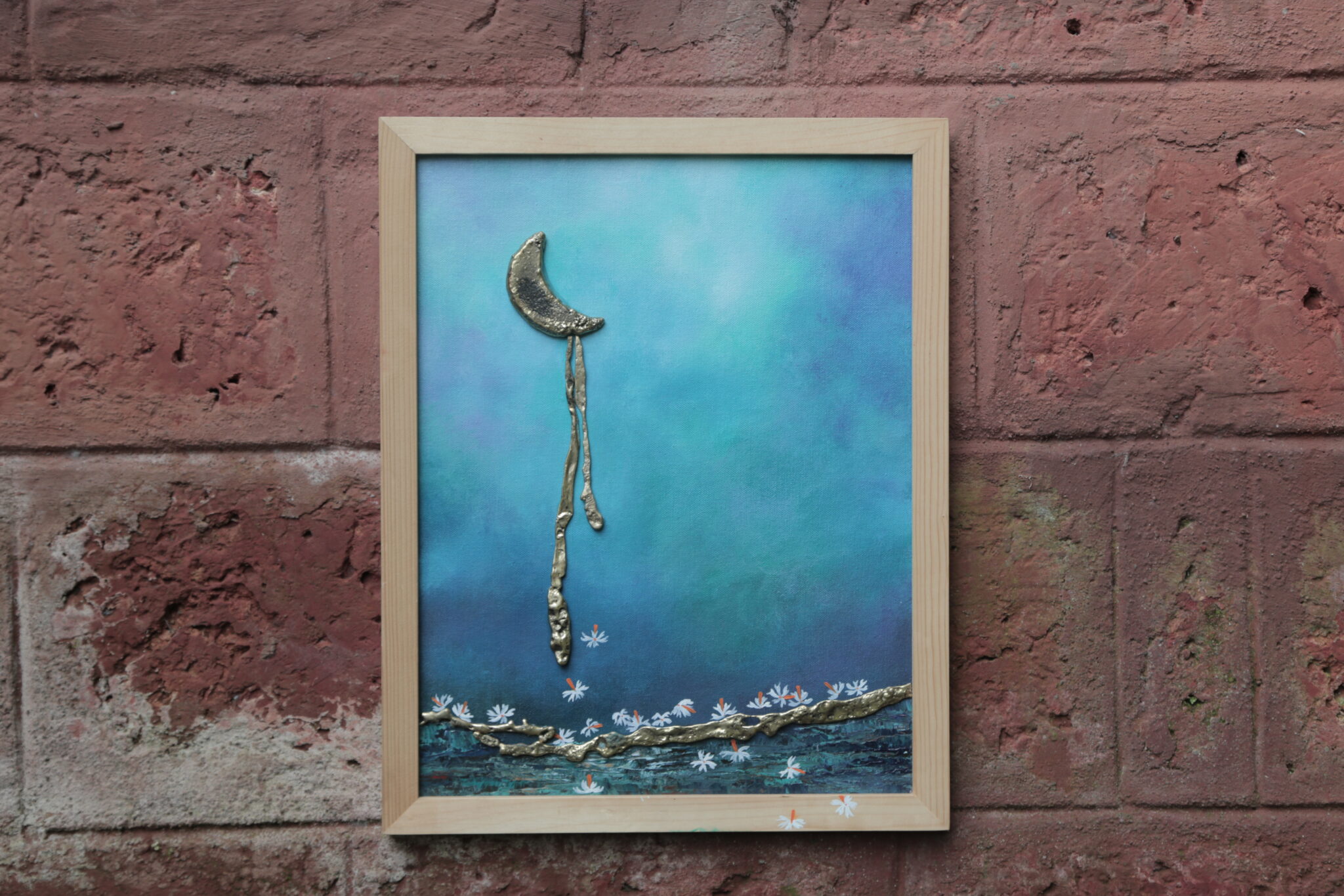 Materials: Acrylic Paint on Canvas, Brass, Wooden Frame