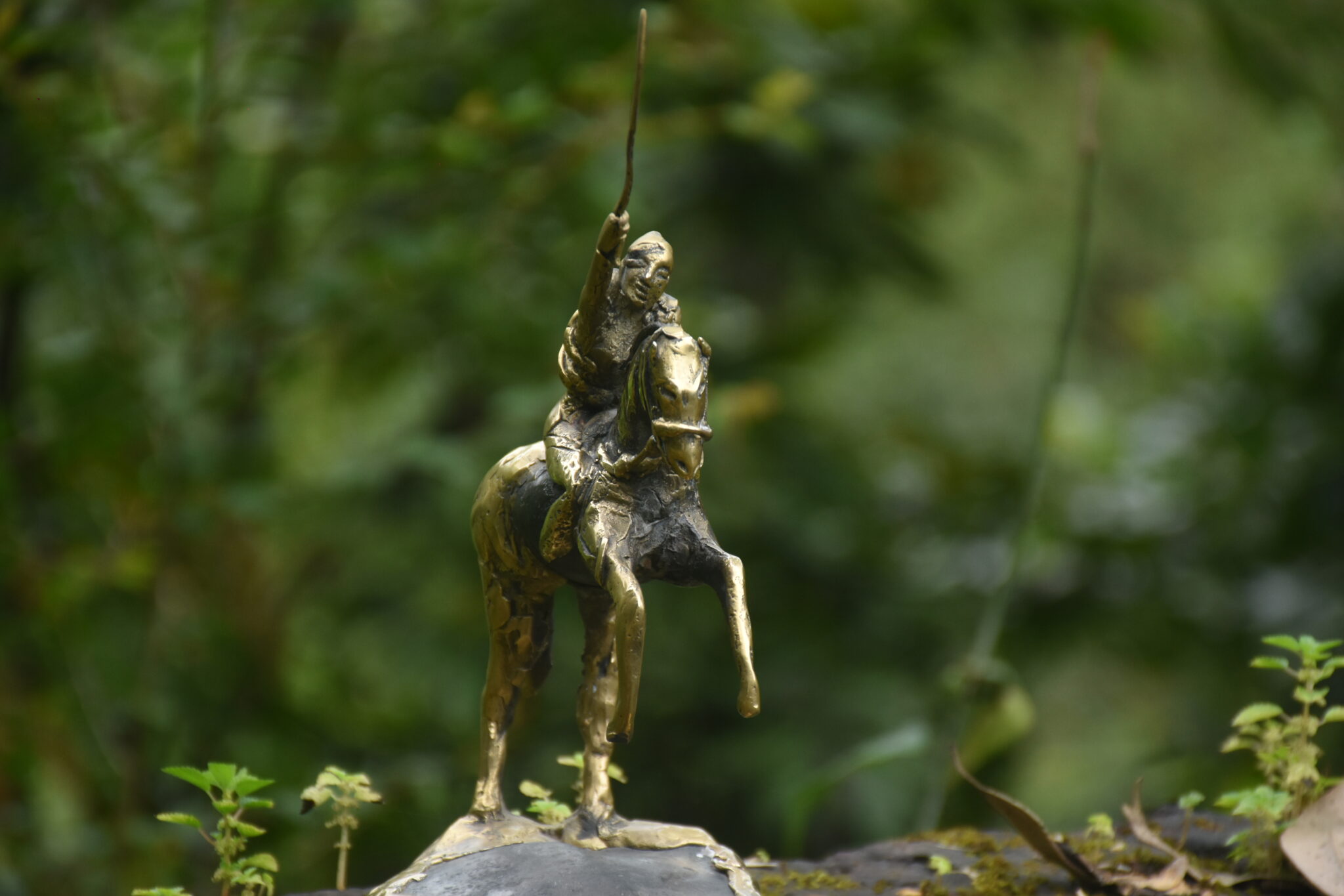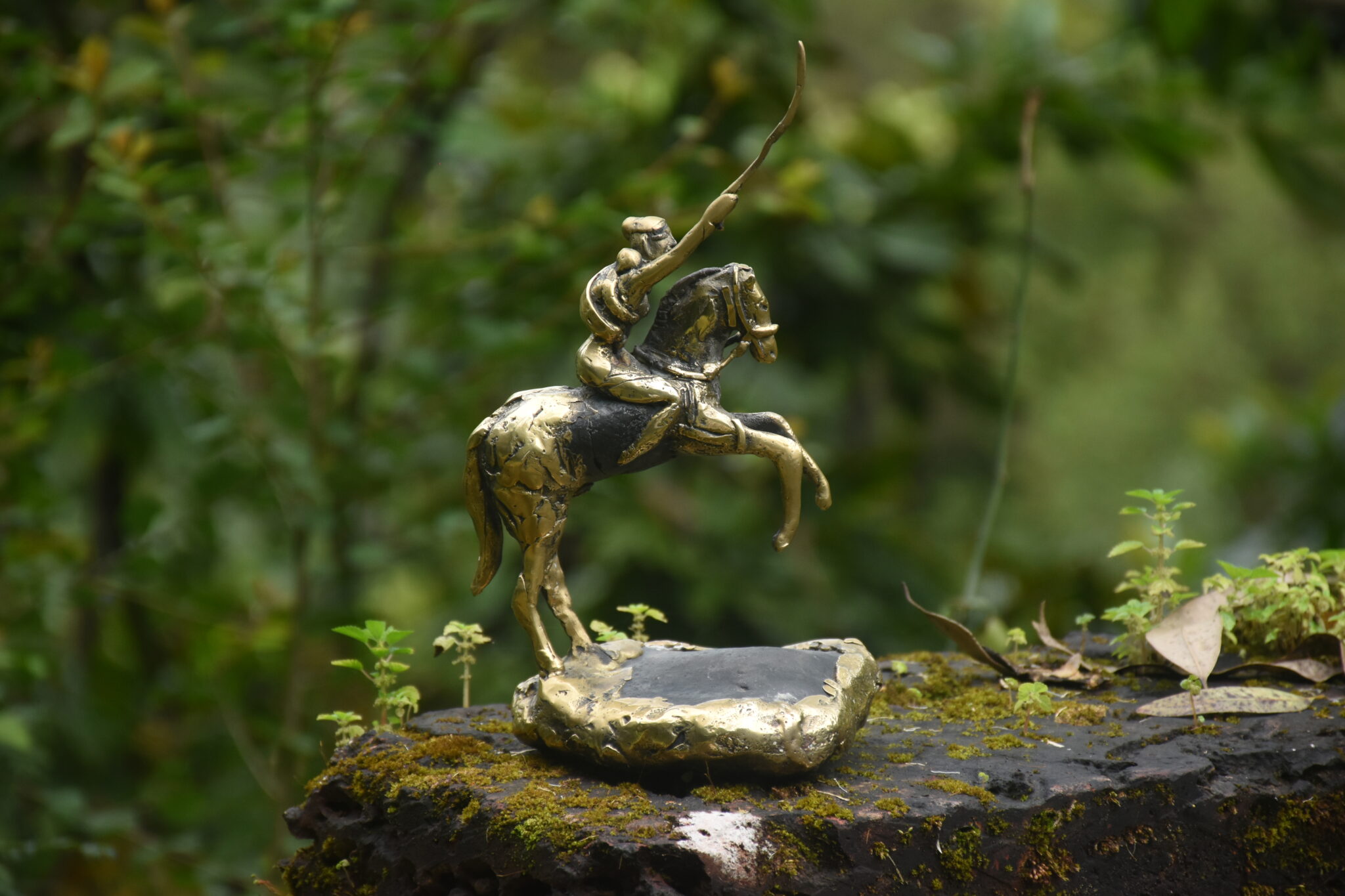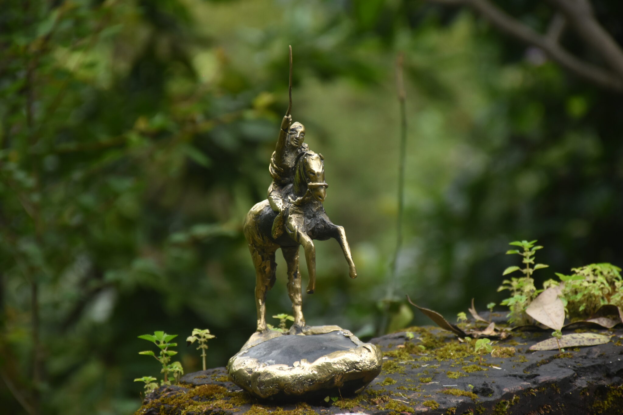 A striking fusion of strength and heritage, this sculpture portrays Rani Lakshmibai, the fearless Queen of Jhansi, mounted in motion on her horse. A leading figure in the Indian Rebellion of 1857, she remains a powerful symbol of courage and resistance, captured here in a dynamic form that brings her indomitable spirit to life.