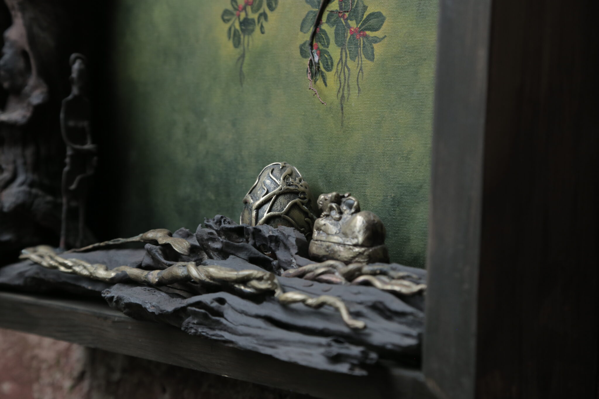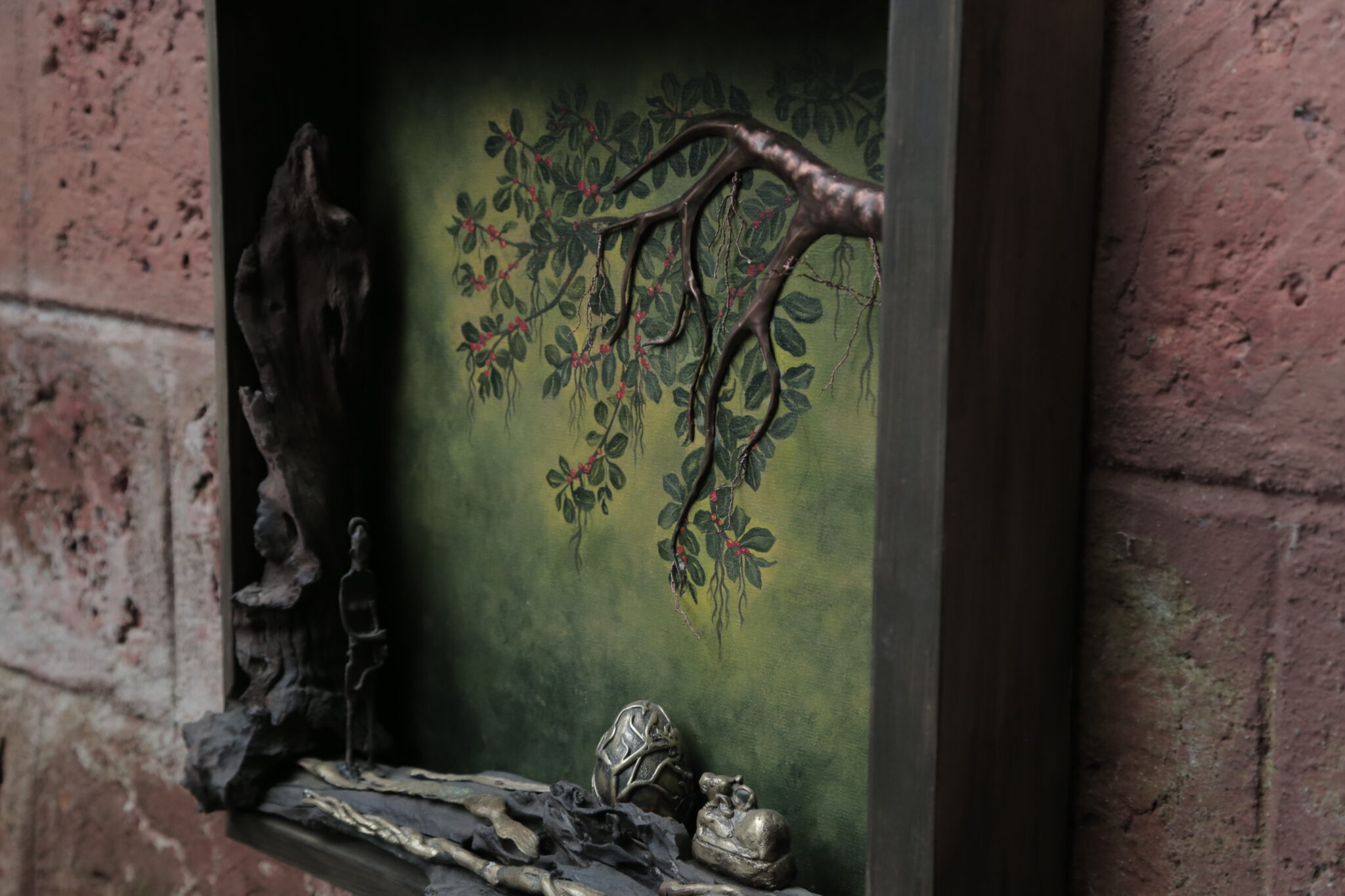 Materials: Acrylic Paint on Canvas, Copper, Brass, Iron, Driftwood, Wooden Frame