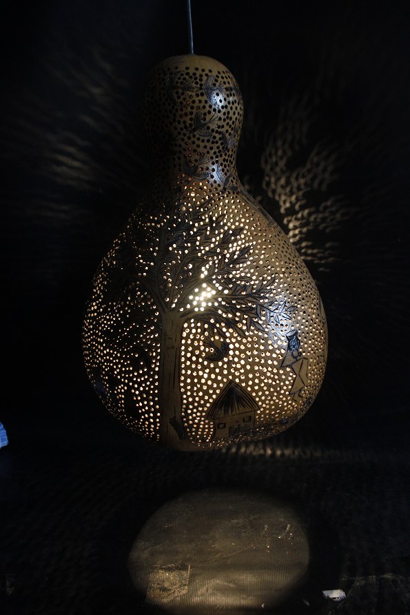 There has been a metamorphosis in the traditional dried gourd craft at Devrai. We have lamps with different design patterns such as Mandala art, nature inspired motifs, stories and myths etched on the surface. Tumba has been put to many other uses as well – we have flower vases, the bigger ones have even turned into wine and beer casks with taps! Draped in fabric, Tumbas have even been turned into puppets. As lamps, they tell stories in mesmerising patterns of light and shadow, but as puppets, they transport us into a different world altogether. The patterns are etched onto the Tumba with red-hot iron tools, requiring immense hand control and precision at each step.