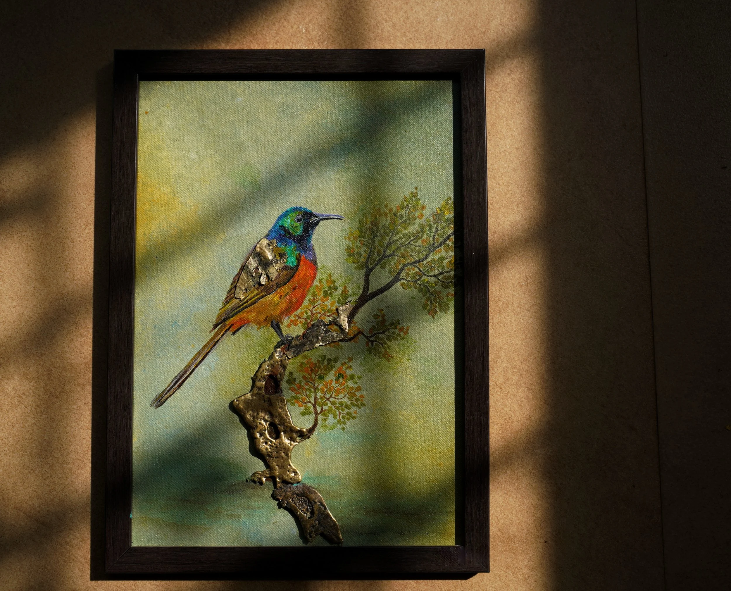 Using dried flowers, leaves, grasses and even the bark of trees, a gamut of themes, stories and designs are explored. These glass framed paintings bring in a bit of wilderness and the exuberance of nature into our homes.